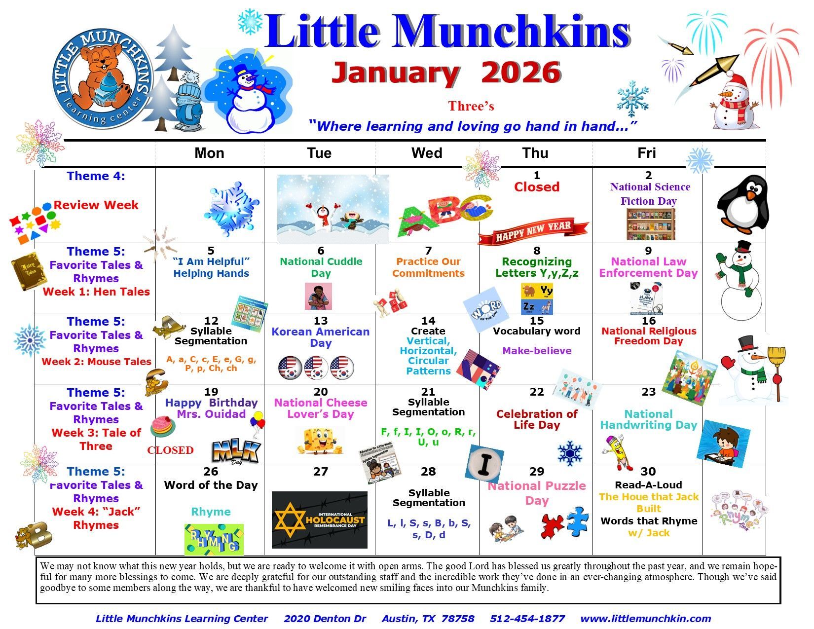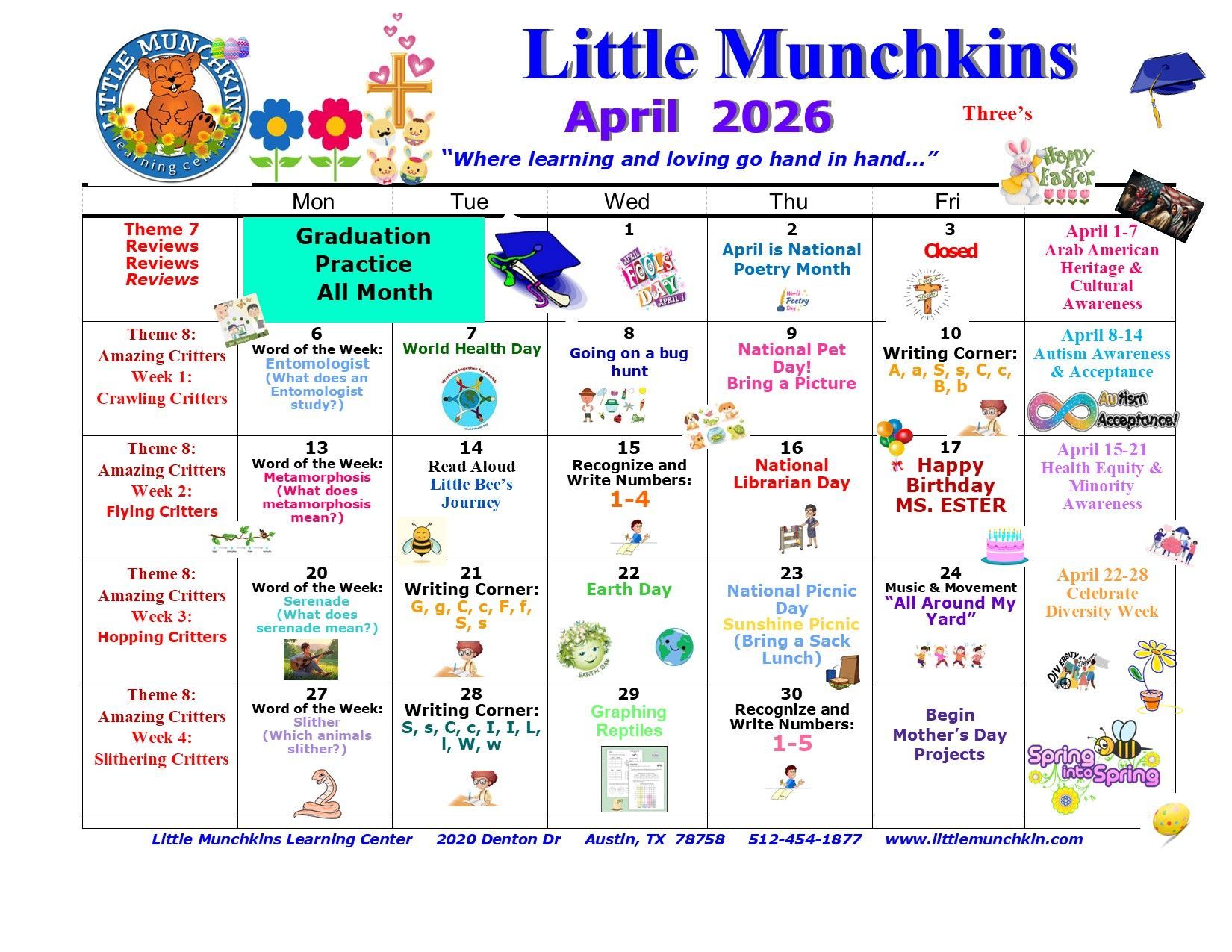 “We have had such a great experience with Little Munchkins Learning Center the last 2 years, and will likely continue to use Little Munchkins for after school and summer time until we outgrow them. Crystal is a great director that truly cares. Ms. Esther and Ms. Tasha have been a huge part of our daughter’s development. We are very grateful to have found Little Munchkins during our search for Pre-Schools.”