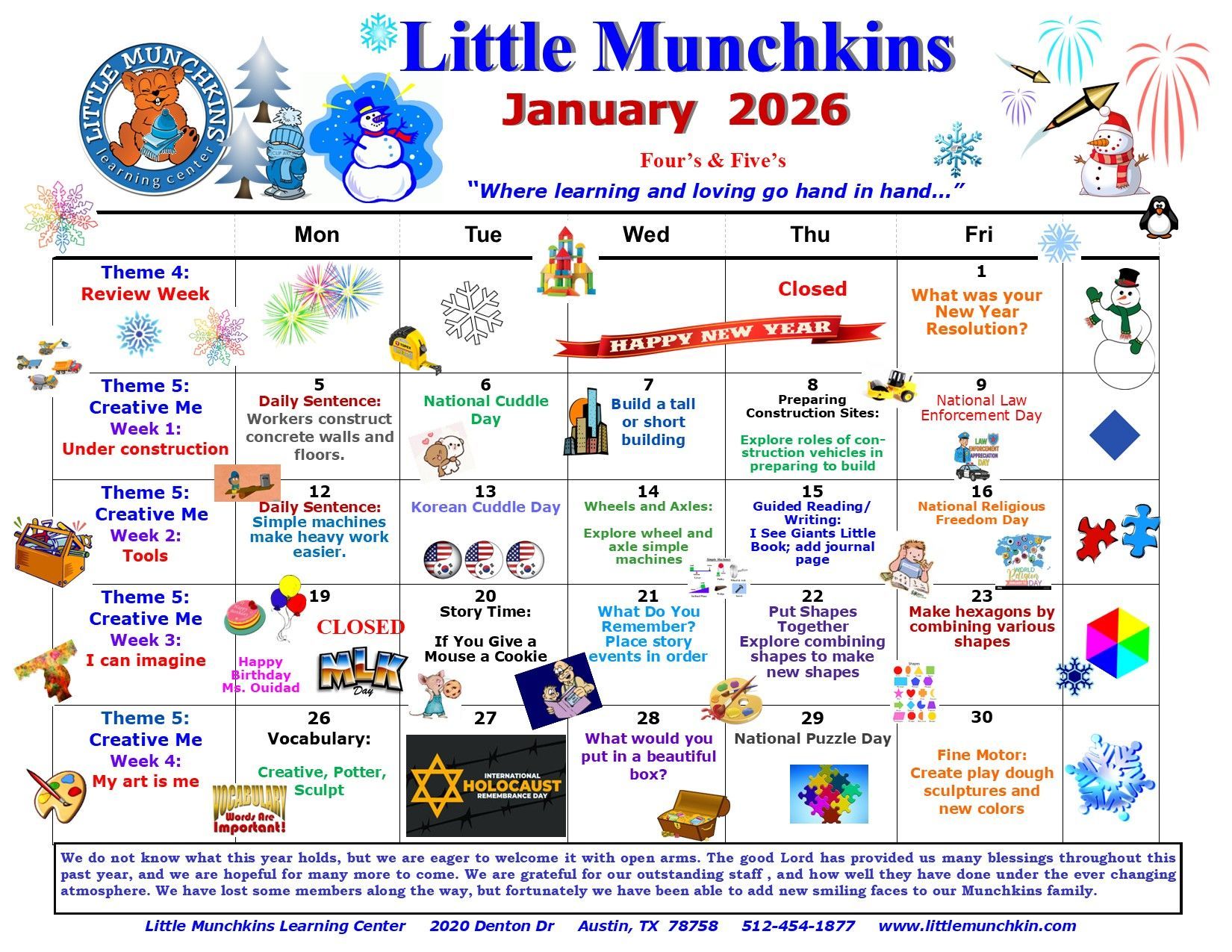 Our Classroom Activity Calendar and Newsletter